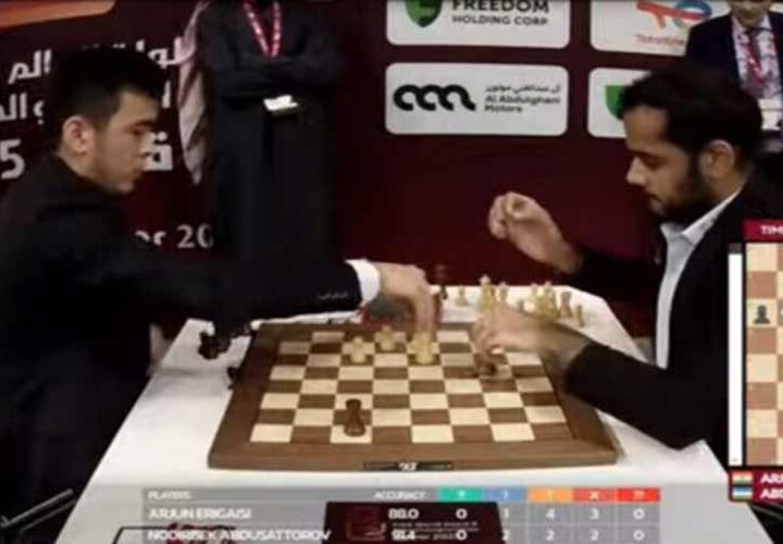 दोहा में आयोजित फिडे वर्ल्ड ब्लिट्ज शतरंज चैंपियनशिप के सेमीफाइनल में भारतीय ग्रैंडमास्टर अर्जुन एरिगैसी को उज्बेकिस्तान...