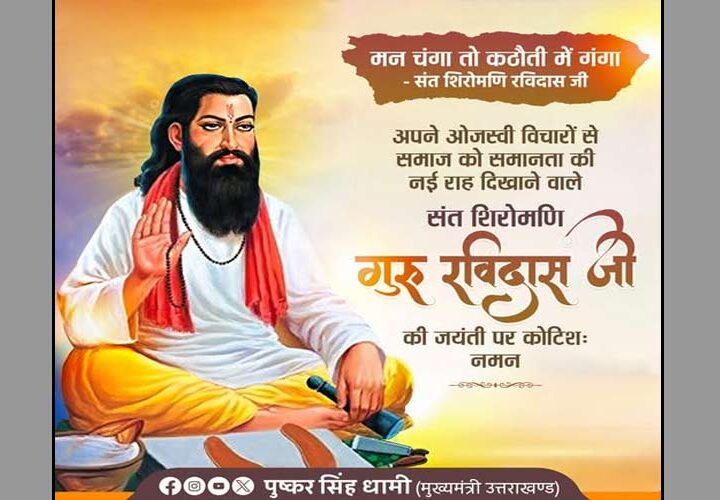 गुरु रविदास जयंती के अवसर पर उत्तराखंड के मुख्यमंत्री पुष्कर सिंह धामी ने प्रदेशवासियों को शुभकामनाएं दी...