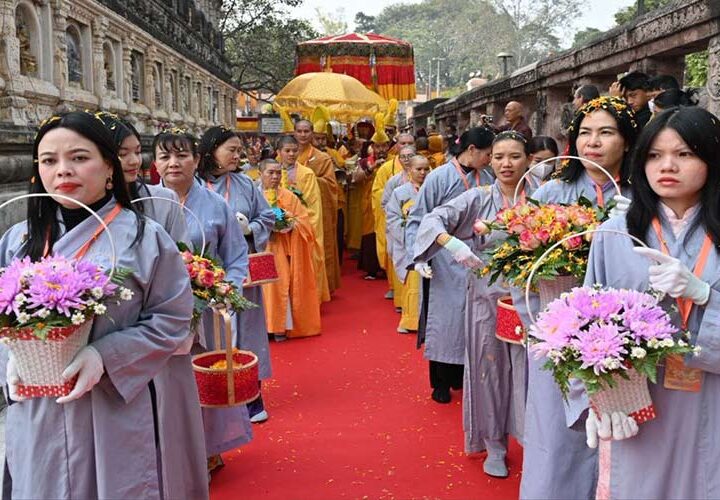 बिहार के बोधगया स्थित श्रीलंका द्वारा निर्मित जयश्री बुद्ध विहार में भगवान बुद्ध तथा उनके प्रमुख शिष्यों...