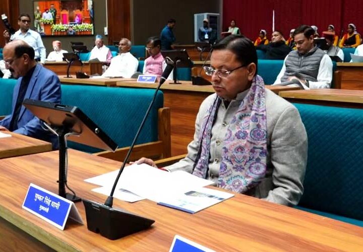 उत्तराखंड की ग्रीष्मकालीन राजधानी गैरसैंण स्थित भराड़ीसैंण विधानसभा भवन में चल रहे विधानसभा बजट सत्र के दौरान...