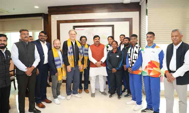 मुख्यमंत्री डॉ. मोहन यादव से शहडोल के ग्राम विचारपुर के फुटबॉल खिलाड़ियों ने मंगलवार को मंत्रालय में भेंट की। खिलाड़ियों के साथ उनके जर्मन प्रशिक्षक डाइटमर बायर्सडार्फर, मैनुअल शेफ़र और खेल संचालक श्री राकेश गुप्ता भी उपस्थित रहे। मुख्यमंत्री डॉ. यादव ने समस्त खिलाड़ियों को उत्कृष्ट प्रदर्शन के लिए बधाई और भावी स्पर्धाओं में सफलता के लिए शुभकामनाएं दीं। मुख्यमंत्री डॉ. यादव ने दोनों अंतर्राष्ट्रीय प्रशिक्षकों का स्वागत किया।