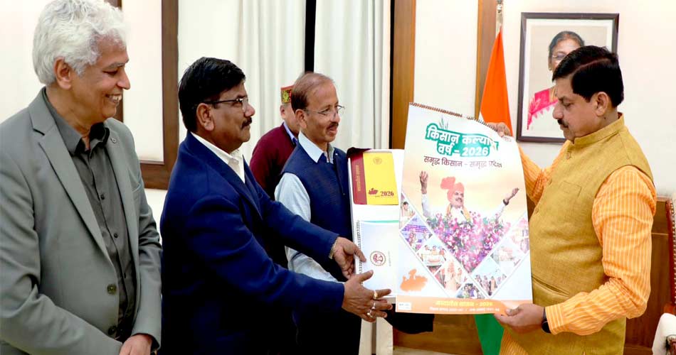 मुख्यमंत्री डॉ. मोहन यादव ने गुरूवार एक जनवरी को मध्यप्रदेश शासन के वर्ष 2026 के कैलेंडर का विमोचन किया। किसान कल्याण वर्ष 2026 का यह कैलेंडर “समृद्ध किसान-समृद्ध प्रदेश” की थीम पर प्रकाशित किया गया है। मुख्यमंत्री डॉ. यादव ने बहुरंगी और आकर्षक रूप से आकल्पित कैलेंडर और उसकी विषय वस्तु की प्रशंसा की। उन्होंने कहा कि शासकीय डायरी का मुद्रित स्वरूप, अधिकारी-कर्मचारियों और प्रदेशवासियों के लिए उपयोगी होगा। वर्ष 2026, विक्रम संवत 2082-83 और शक संवत 1947-48 के राज्य शासन के कैलेंडर में 12 महीनों के पृष्ठों में प्रदेश के प्रमुख आयोजनों, उपलब्धियों और आगामी लक्ष्यों को छाया चित्रों के माध्यम से प्रदर्शित किया गया है। मुख्यमंत्री डॉ. यादव ने वर्ष 2026 की शासकीय डायरी, शीट कैलेंडर और नोटबुक का भी विमोचन किया। मुख्यमंत्री निवास में हुए कैलेंडर विमोचन के अवसर पर आयुक्त जनसम्पर्क श्री दीपक कुमार तथा नियंत्रक शासकीय मुद्रणालय श्री चंद्रशेखर वालिंबे उपस्थित थे।