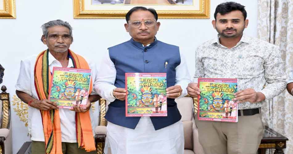 मुख्यमंत्री श्री विष्णु देव साय ने आज राजधानी रायपुर स्थित मुख्यमंत्री निवास कार्यालय में पद्मश्री श्री जागेश्वर यादव के जीवन पर आधारित पुस्तक “बिरहोर जननायक” का विमोचन किया। इस अवसर पर उन्होंने पुस्तक के लेखक डॉ. लोकेश पटेल को बधाई एवं शुभकामनाएँ दीं।
