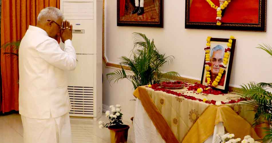 राज्यपाल श्री मंगुभाई पटेल ने भारत रत्न पूर्व प्रधानमंत्री स्वर्गीय अटल बिहारी वाजपेयी की जन्म जयंती के अवसर पर उनका पुण्य स्मरण किया। लोकभवन में गुरुवार को आयोजित समारोह में स्वर्गीय अटल बिहारी वाजपेयी के चित्र पर पुष्प अर्पित कर श्रद्धांजलि अर्पित की।