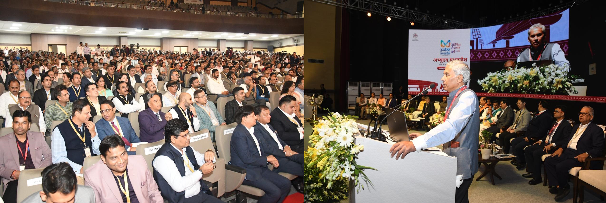 स्तंभ सुख, समृद्धि और सुसंस्कृति हैं। देश में कल्चरल इकोनामी के विकास की अपार संभावनाएं हैं। प्रदेश में रोजगार और उद्योग को प्रोत्साहित करने के लिए मेक इन मध्यप्रदेश पर विशेष जोर दिया जा रहा है। प्रदेश में खेती को बढ़ावा देने के लिए किसानों को नई तकनीक से जोड़ा जाएगा। प्रदेश के 97 प्रतिशत किसानों की डिजिटल रजिस्ट्री पूर्ण हो चुकी है। इस मामले में मध्यप्रदेश नंबर वन है। सर्विस सेक्टर को बढ़ाते हुए प्रदेश में 3 एआई सिटी विकसित की जाएंगी। उन्होंने बताया कि मध्यप्रदेश, देश का एकमात्र ऐसा राज्य होगा, जहां पूरी सरकार एक स्क्रीन पर मौजूद होगी। एमपी ई-सेवा पोर्टल से नागरिकों को आज से 500 सेवाएं ऑनलाइन प्राप्त होंगी। शेष विभागों की 1750 सेवाएं भी जल्द ही ऑनलाइन मिलने लगेंगी। समारोह में एमएसएमई मंत्री श्री चैतन्य कुमार काश्यप, अडानी ग्रुप के प्रबंध निदेशक श्री प्रणव अडानी, संस्कृति एवं पर्यटन राज्यमंत्री (स्वतंत्र प्रभार) श्री धर्मेन्द्र भाव सिंह लोधी, विधायक श्री रामेश्वर शर्मा, विधायक श्री भगवानदास सबनानी, एयरपोर्ट ॲथोरिटी ऑफ इंडिया के चेयरमेन श्री विपिन कुमार सहित उद्योग समूहों और मीडिया प्रतिनिधि उपस्थित थे।
