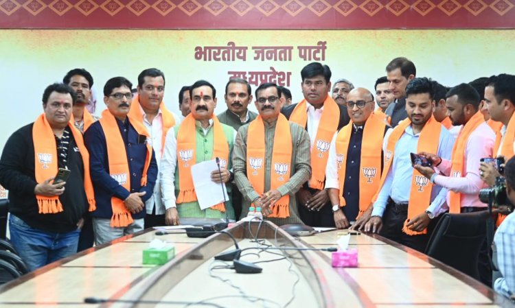 भोपाल, दिनांक 13/03/2024। भारतीय जनता पार्टी, प्रदेश कार्यालय में पार्टी के प्रदेश अध्यक्ष व सांसद श्री विष्णुदत्त शर्मा, न्यू ज्वॉइनिंग टोली के प्रदेश संयोजक डॉ. नरोत्तम मिश्रा एवं चिकित्सा प्रकोष्ठ के प्रदेश संयोजक डॉ. अभिजीत देशमुख के समक्ष बुधवार को कांग्रेस चिकित्सा प्रकोष्ठ के 80 से अधिक पदाधिकारी एवं मुरैना के कांग्रेस पदाधिकारियों ने भाजपा की सदस्यता ग्रहण की।