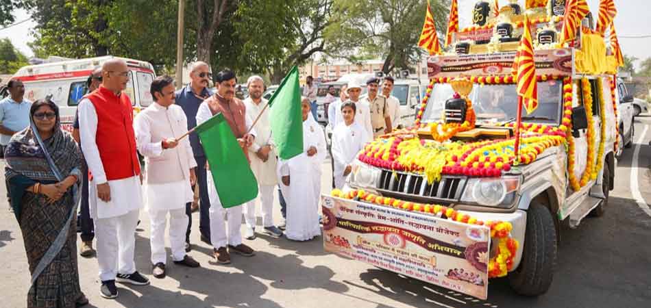 मुख्यमंत्री डॉ. मोहन यादव ने रीवा में ब्रहृाकुमारी संस्थान द्वारा संचालित किए जा रहे पारिवारिक संस्कृति व प्रेम, शांति एवं सद्भावना रथ को हरी झण्डी दिखाकर रवाना किया। मुख्यमंत्री डॉ. यादव ने कहा कि यह अभियान समाज में प्रेम, शांति और भाईचारे की भावना को सशक्त करेगा तथा प्रदेश में सकारात्मक परिवर्तन लाएगा। प्रेम, शांति और विश्व बंधुत्व का संदेश लेकर गांव-गांव तक भ्रमण करने वाले रथ से एकता, प्रेम, सद्भावना व नशामुक्ति का संदेश जन-जन तक पहुंचेगा। मुख्यमंत्री डॉ. यादव ने जनजागृति रथ में स्थापित 12 ज्योतिर्लिंगों के दिव्य स्वरूपों की पूजा-अर्चना की।