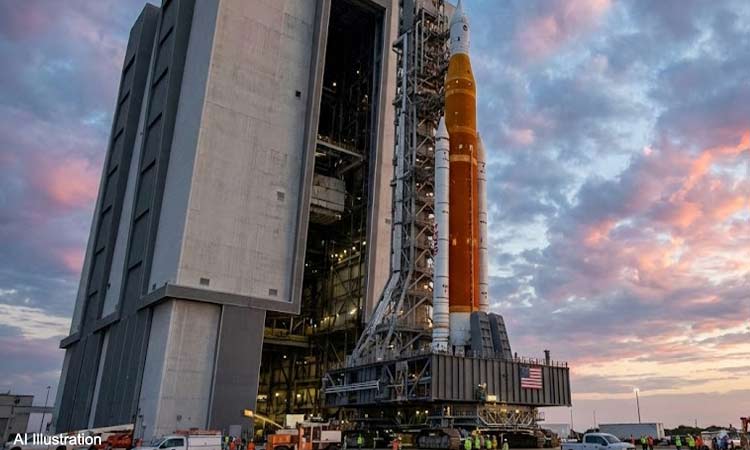 NASA की विशाल नई चंद्रमा रॉकेट शनिवार को लॉन्च पैड पर स्थानांतरित की गई, ताकि आधी सदी से अधिक समय बाद अंतरिक्ष यात्रियों की पहली मानव-युक्त चंद्रमा उड़ान संभव हो सके। यह “आउट-एंड-बैक” मिशन फरवरी में लॉन्च होने की संभावना है।
