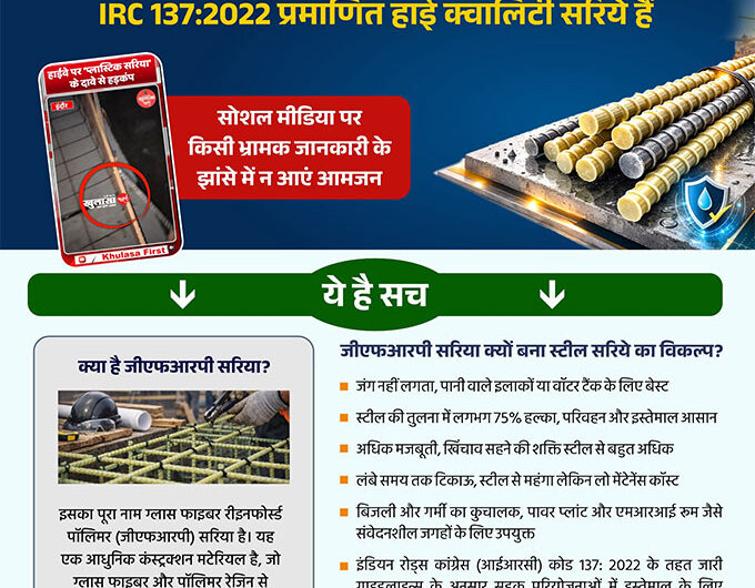 विभागीय अधिकारियों और विशेषज्ञों ने किया स्पष्टनिर्माण में प्लास्टिक नहीं, बल्कि ग्लास फाइबर रीइनफोर्स्ड पॉलिमर (GFRP)स्टील के...