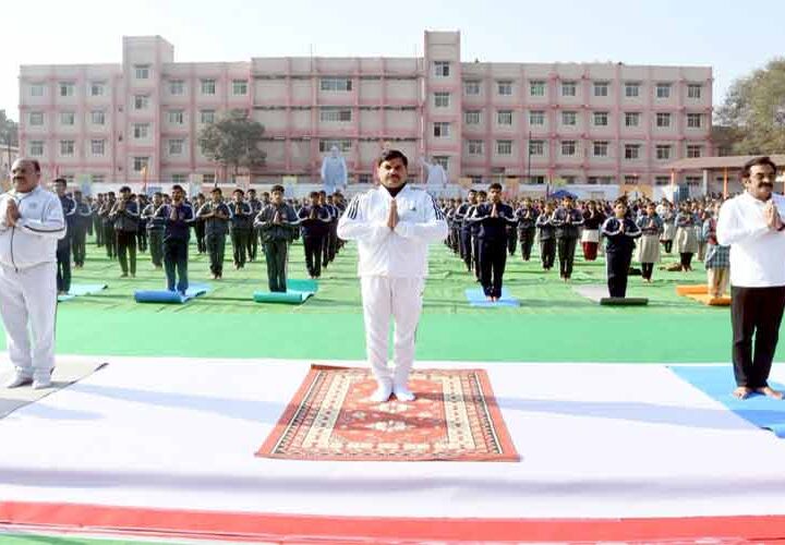 नरसिंहपुर जिले के राव रुक्मणीदेवी पब्लिक स्कूल में आयोजित सूर्य नमस्कार कार्यक्रम में हुए शामिलविद्यार्थियों के साथ...
